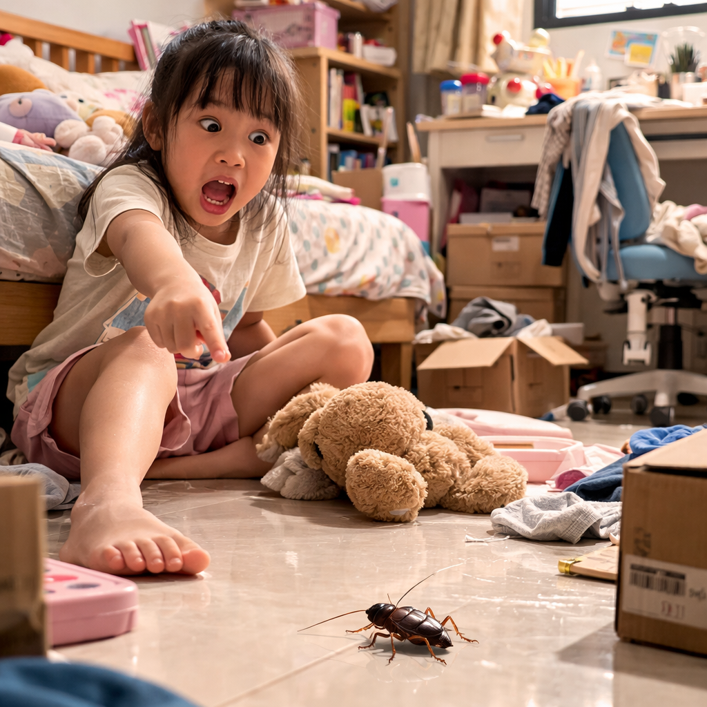 「我才不要和蟑螂住在一起!」女兒搶著說。原來,女兒今天在房間裡玩耍時,遇到蟑螂出沒,鬼叫一番之後,終於下定決心要清理房間。